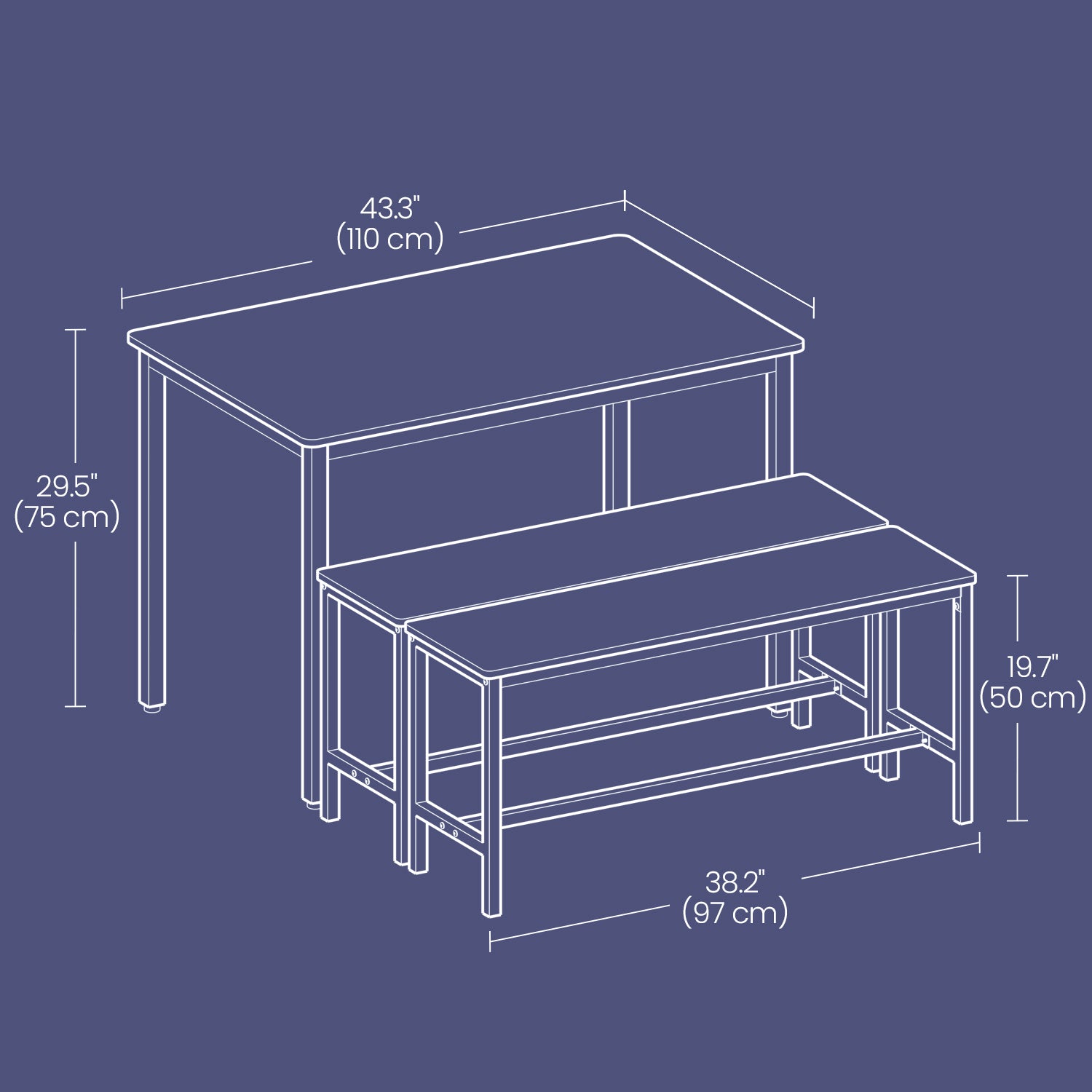 VASAGLE Dining Table with 2 Benches, Set of 3, Kitchen Table