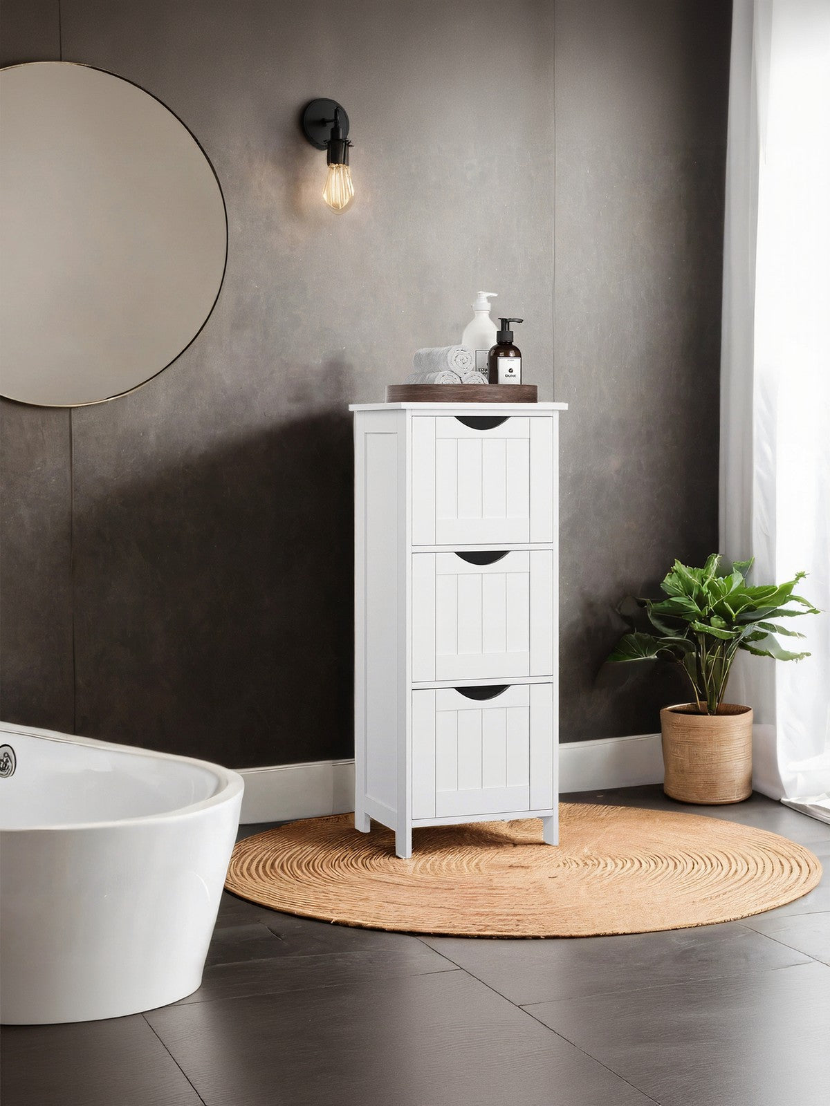 Freestanding Storage Cabinet for Bathroom, with Drawers, Modern Bathroom Storage Organiser Unit, Green