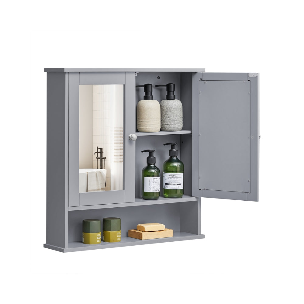 VASAGLE Wall-Mounted Bathroom Cabinet with 2 Mirrored Doors and Open Compartment