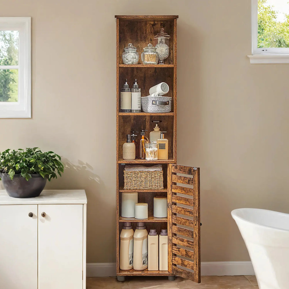 Freestanding Tall Bathroom Storage Cabinet, Bathroom Floor Cabinet, with Open Shelves, Adjustable Shelves, Rustic Brown