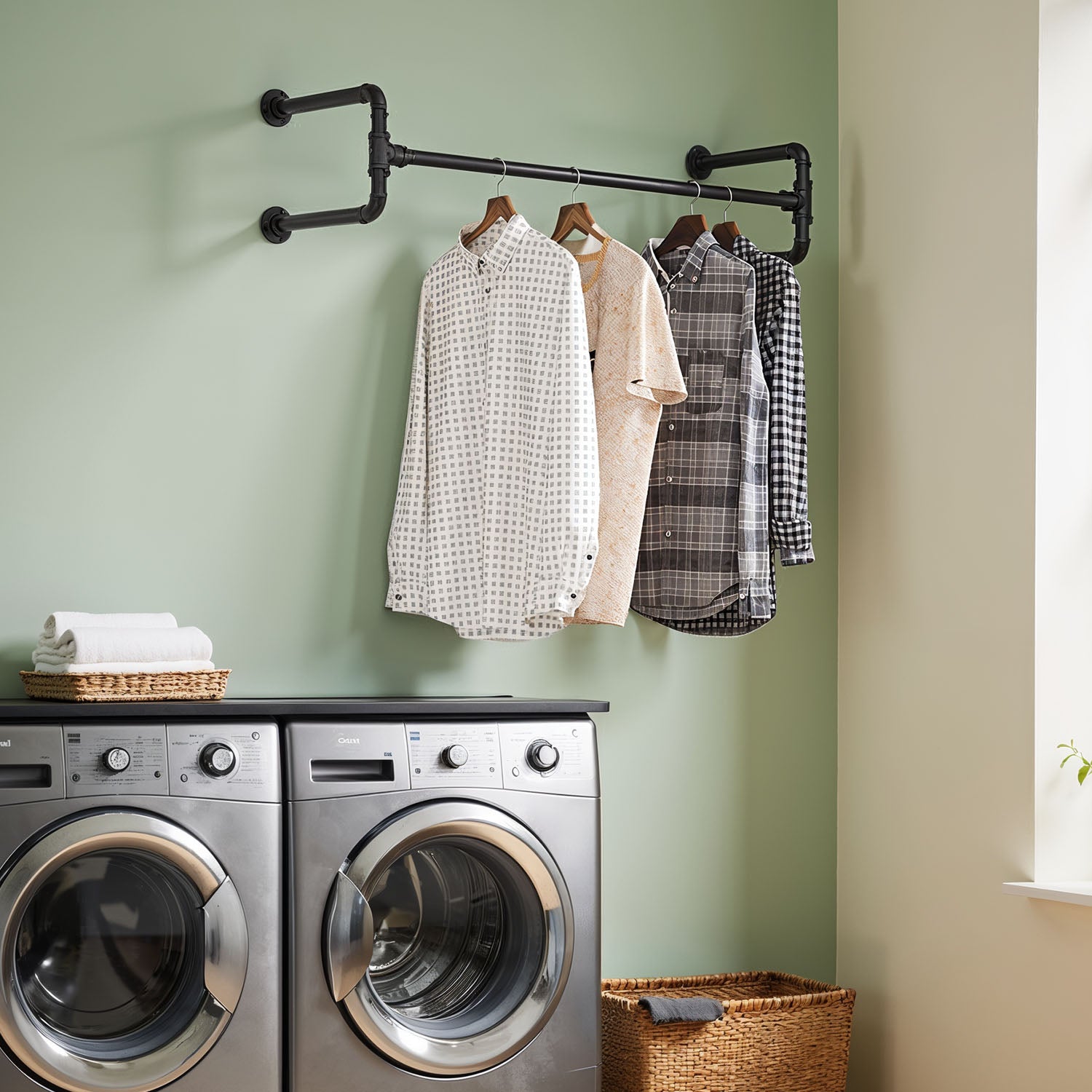 Set of 2 Garment Hanging Bars, Wall-Mounted Clothes Rail, Space-Saving for Small Room, 30 x 112 x 29.3 cm, Black