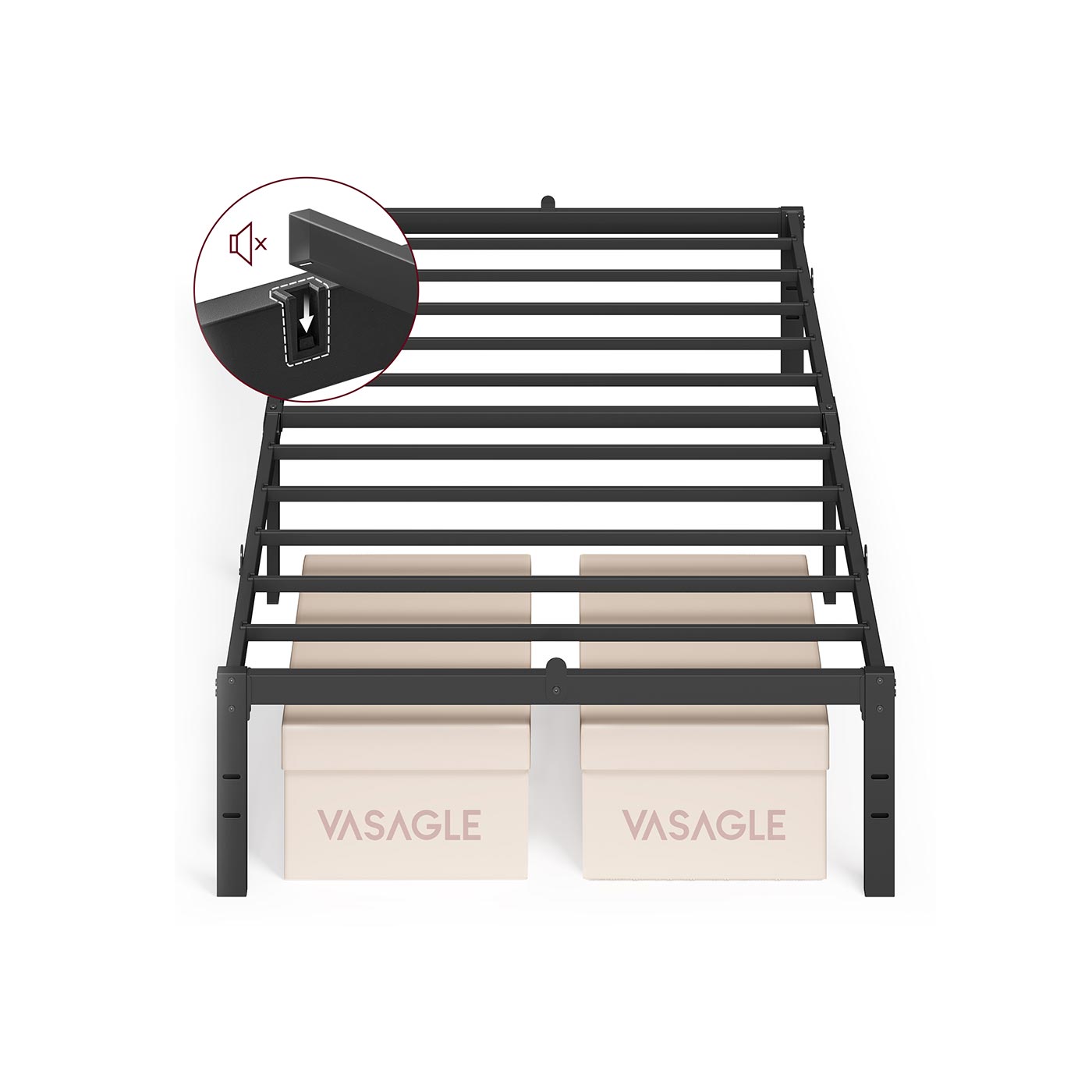 VASAGLE Metal bed frame with under bed storage for modern guest rooms