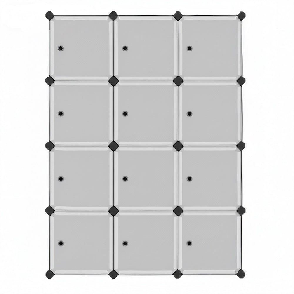 12 Cube Storage Unit, Modular Plastic Storage Shelf with Doors for Living Room, Black