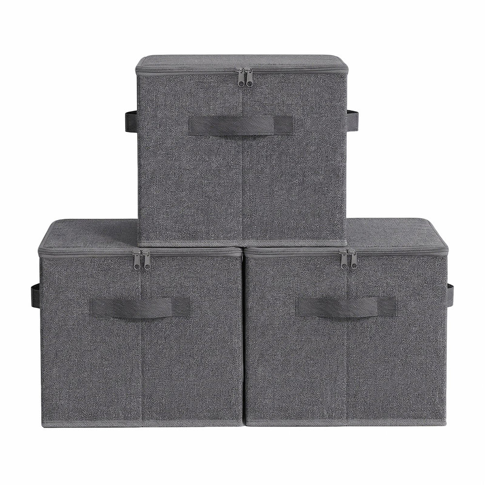 Set of 6 Foldable Storage Boxes with Lids and Handles, Non-Woven Clothes Organiser Baskets