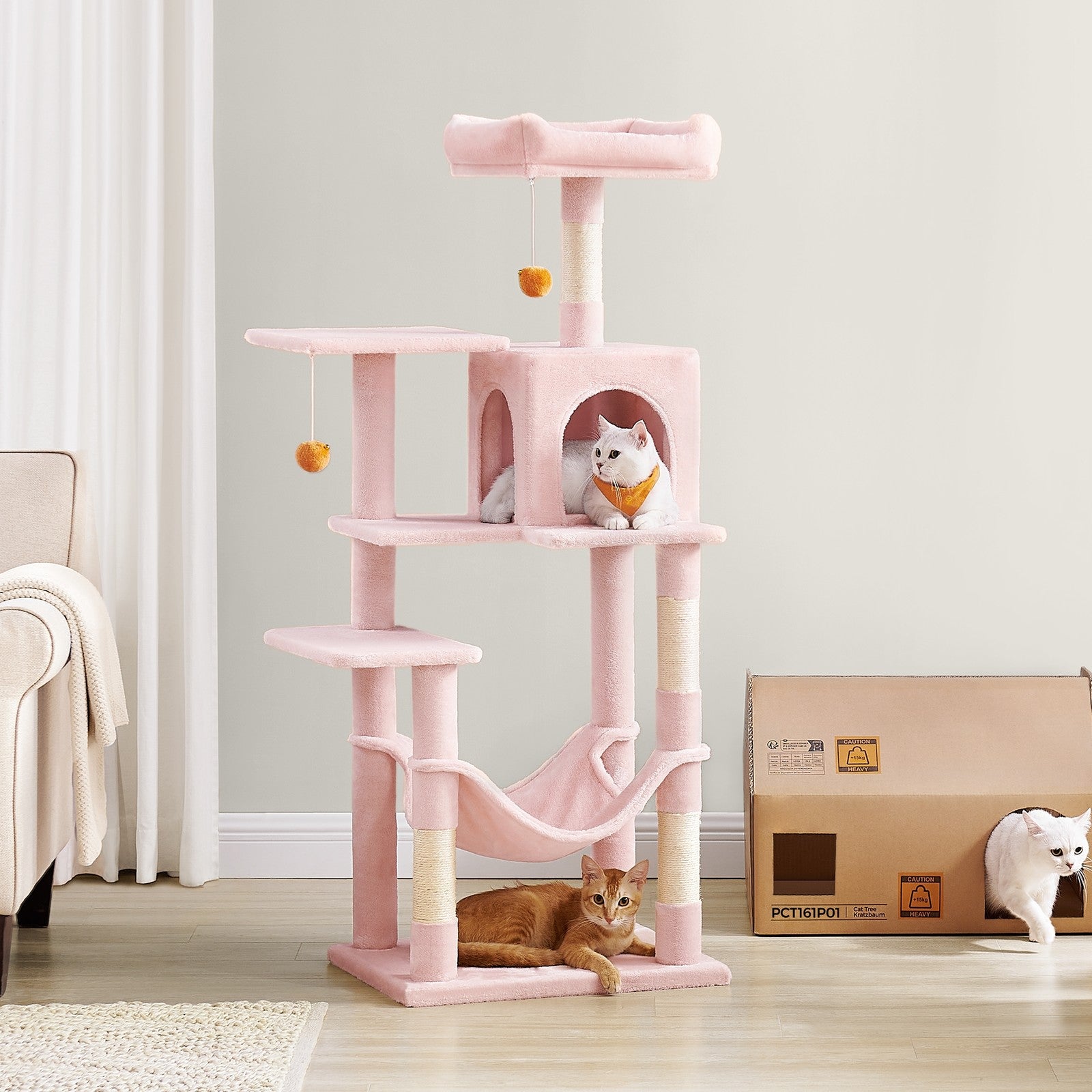 Feandrea Multi-Level Cat Tree, Cat Tower Condo with 4 Scratching Posts, Hammock