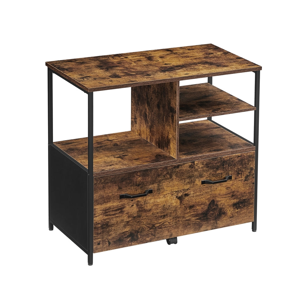 VASAGLE Industrial Brown Mobile Filing Cabinet with Shelves