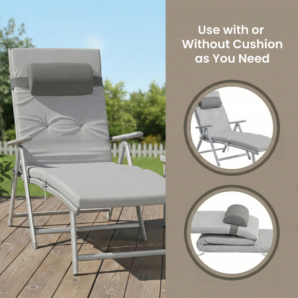 SONGMICS Folding Sun Lounger with 6 cm Thick Mattress