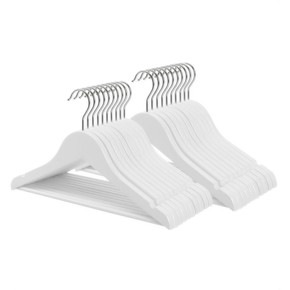 20-Pack Kids' Wooden Clothes Hangers with Trousers Bar, Shoulder Notches & Swivel Hook