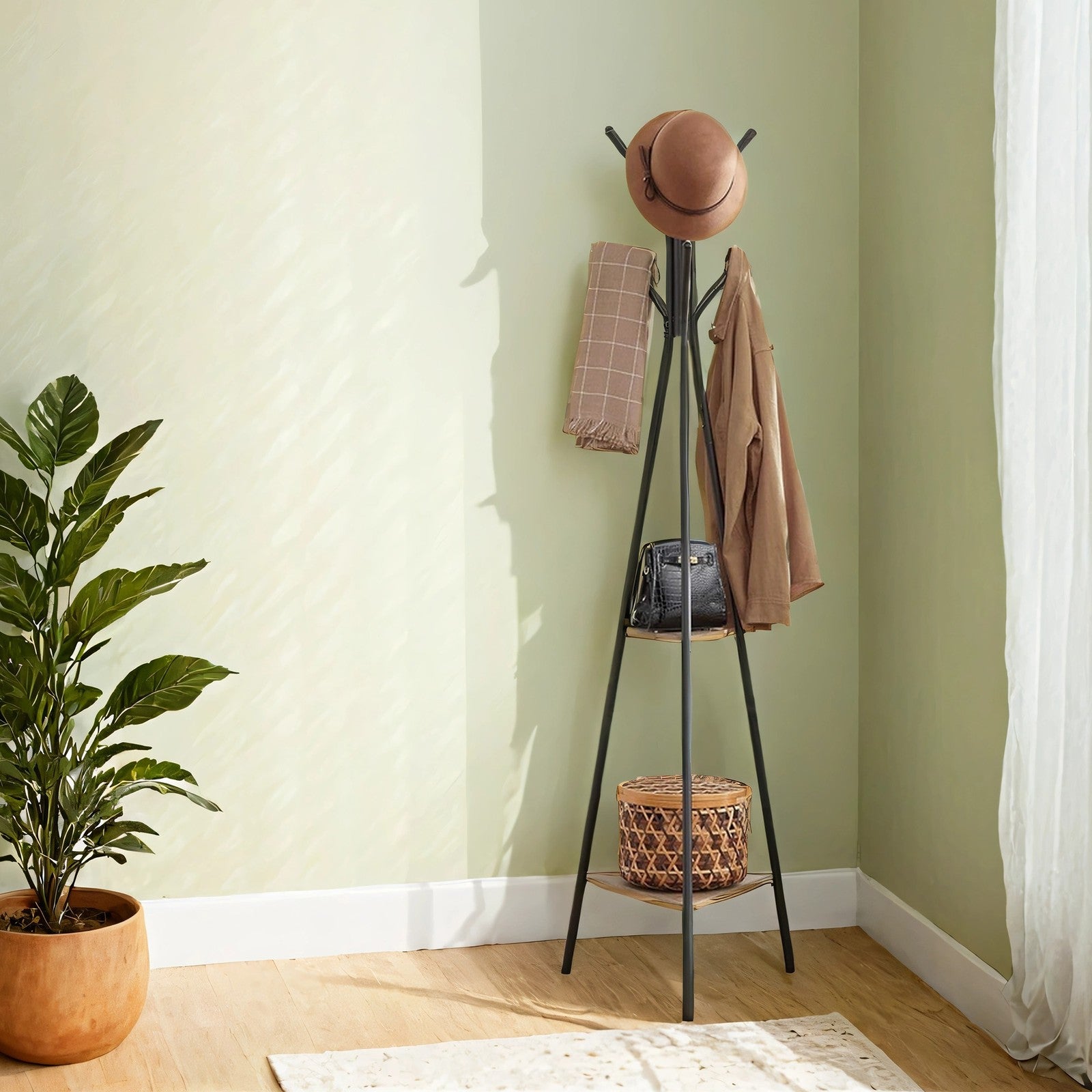 Coat Rack Freestanding, Coat Hanger Stand, Hall Tree with 2 Shelves