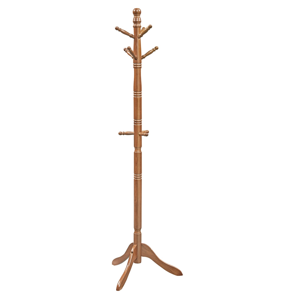 Coat Rack Stand, 10-Hook Tree, Free-Standing, Caramel Brown