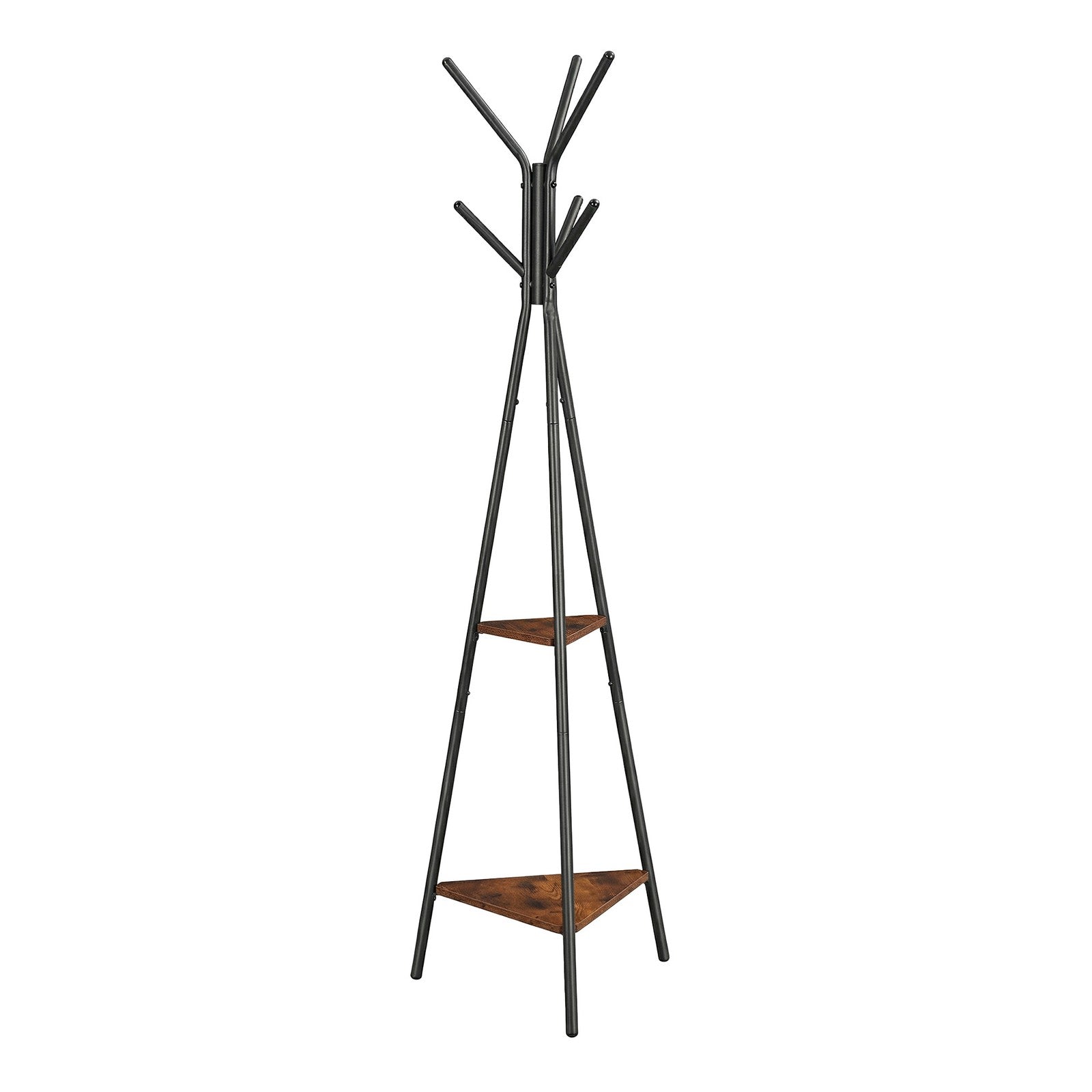 Industrial Coat Rack with Stand, 2 Shelves