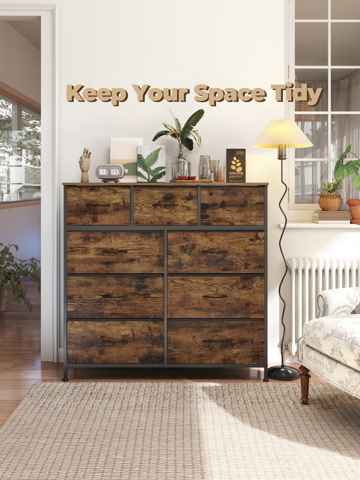 Rustic Brown + Ink Black / 9 Drawers