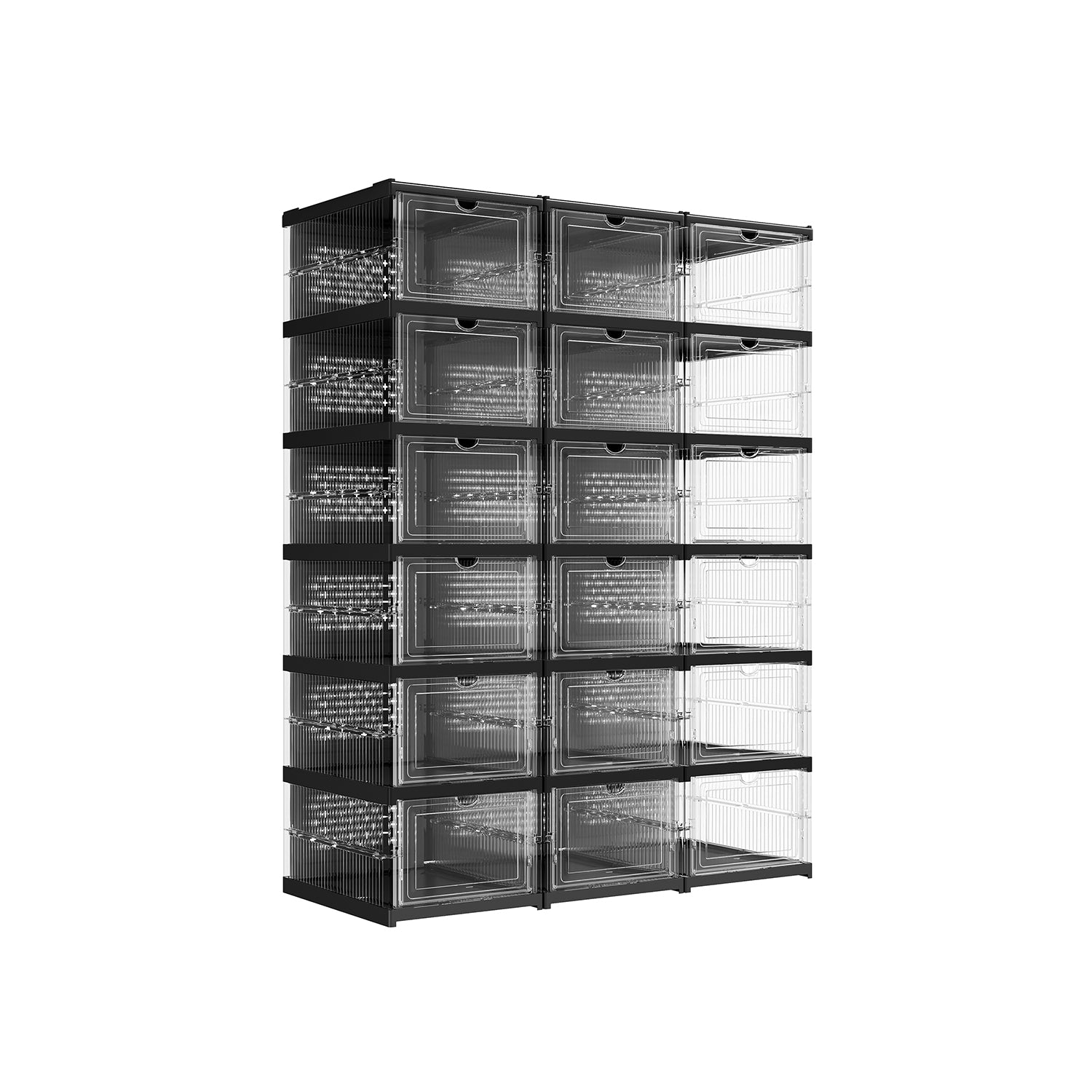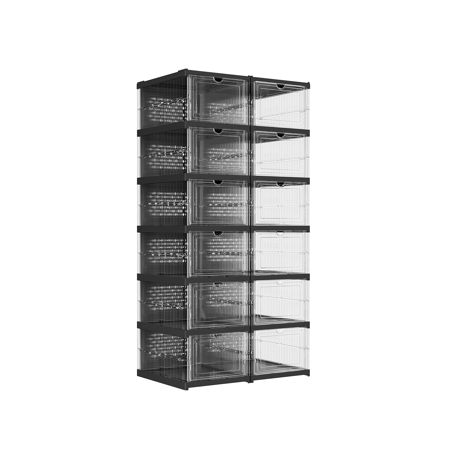 Pack of 6 Stackable Shoe Boxes Transparent and Ink Black