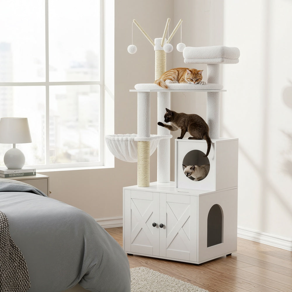 Cat Tree with Litter Box Furniture Hidden Enclosure