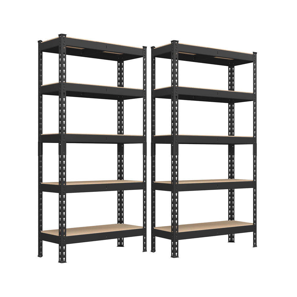 Set of 2 5-Tier Shelving Unit Storage Shelves 30 x 75 x 150 cm Load 875 kg Black