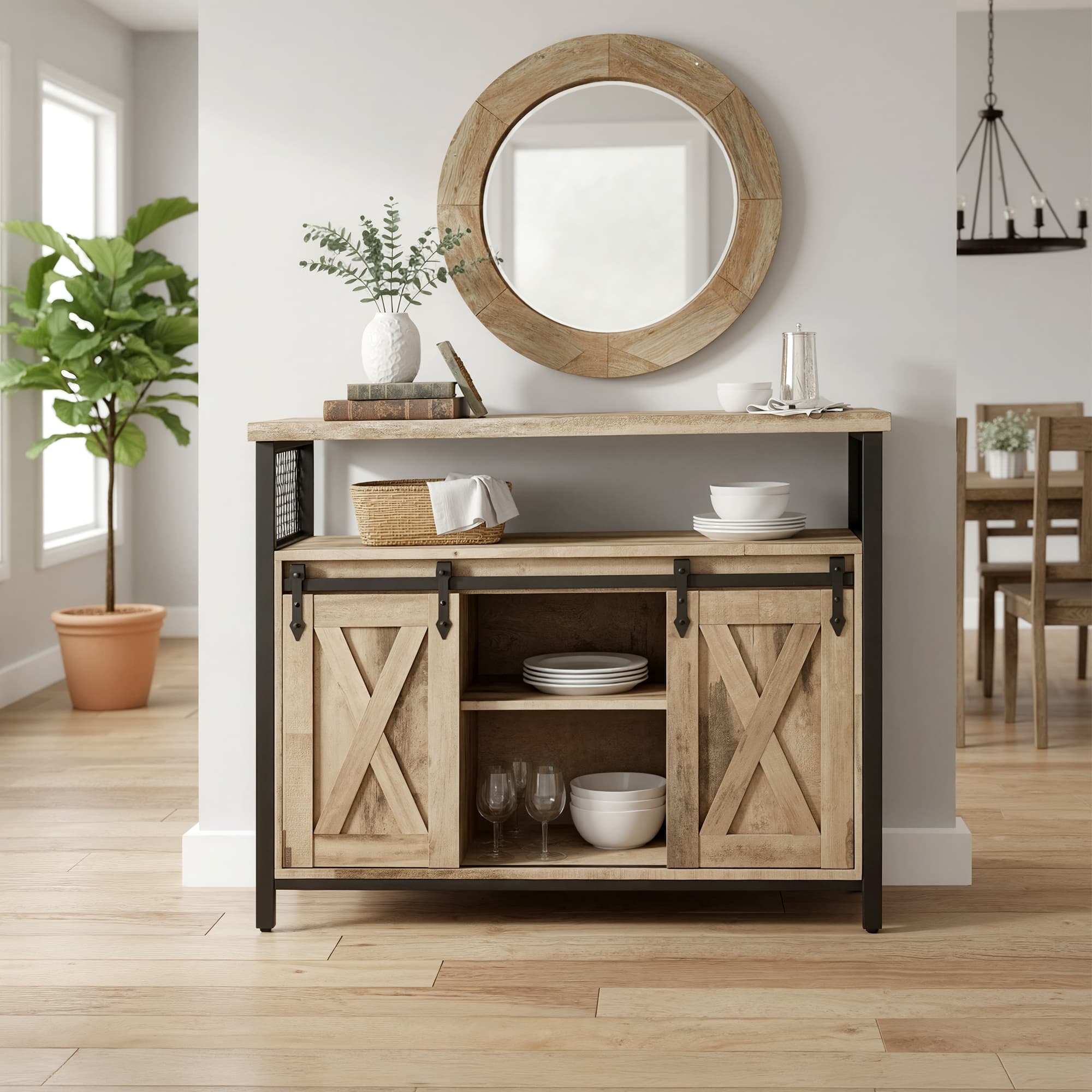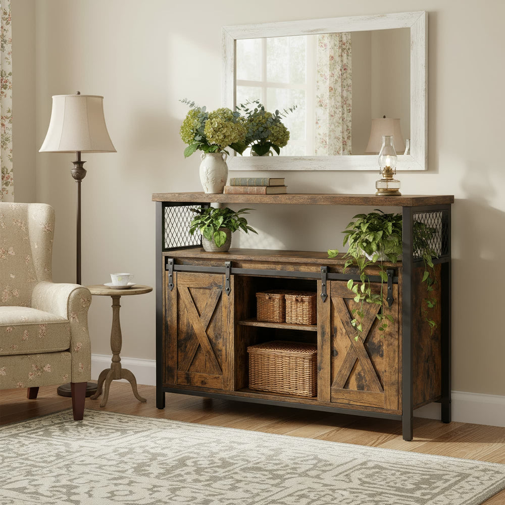 VASAGLE Buffet Cabinet, Sideboard with 2 Sliding Barn Doors, Adjustable Shelves