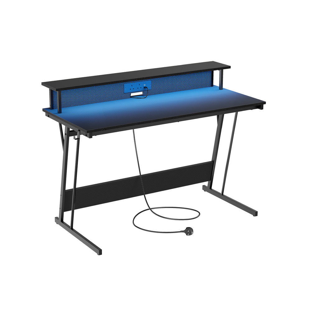 Gaming Desk with LED Lights and Built-In Power Outlets 55 x 135 x 76 cm