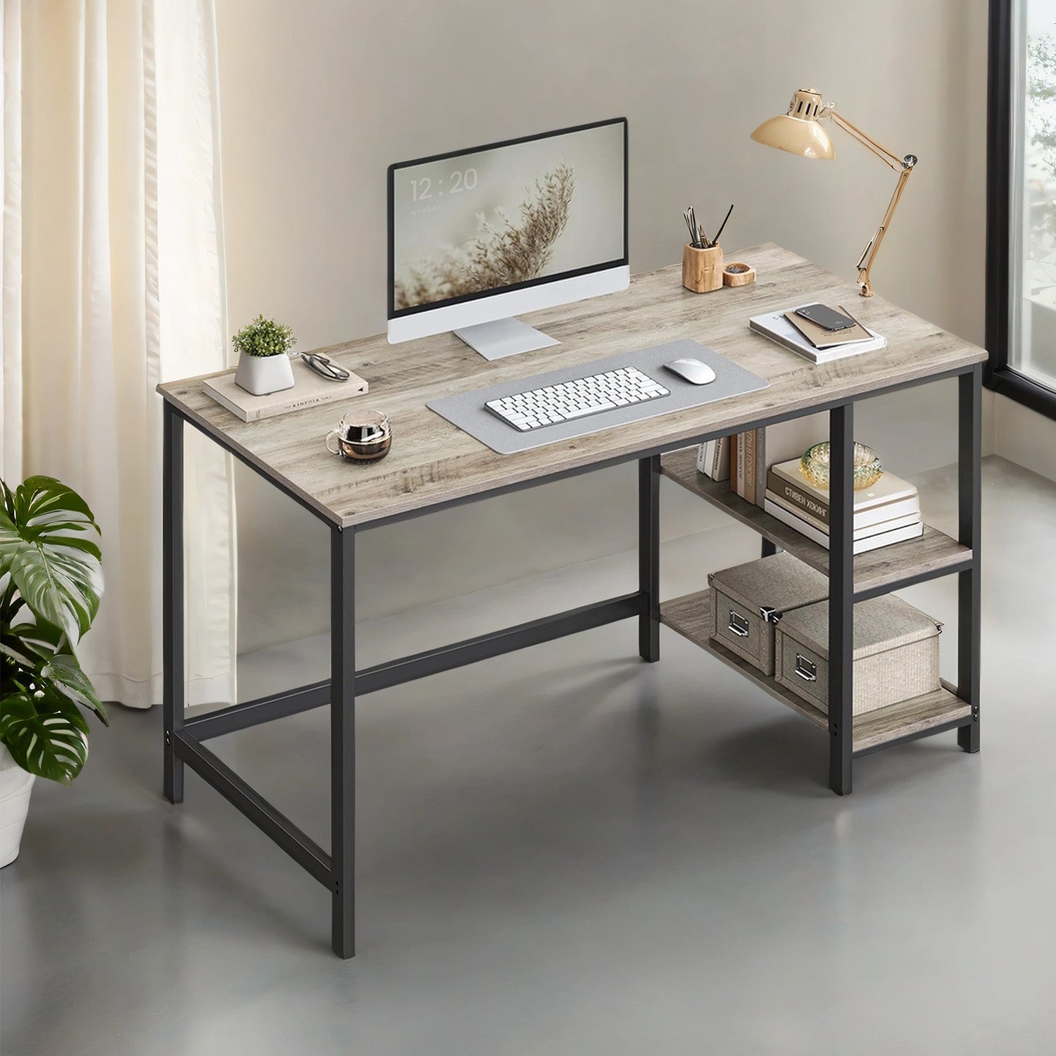 VASAGLE Industrial 47 Inches Computer Desk with Shelves