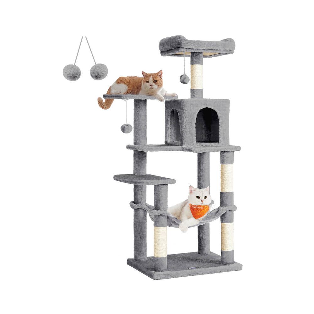Grey Cat Condo with Hammock & Pompoms | FEANDREA Cat Tree UK