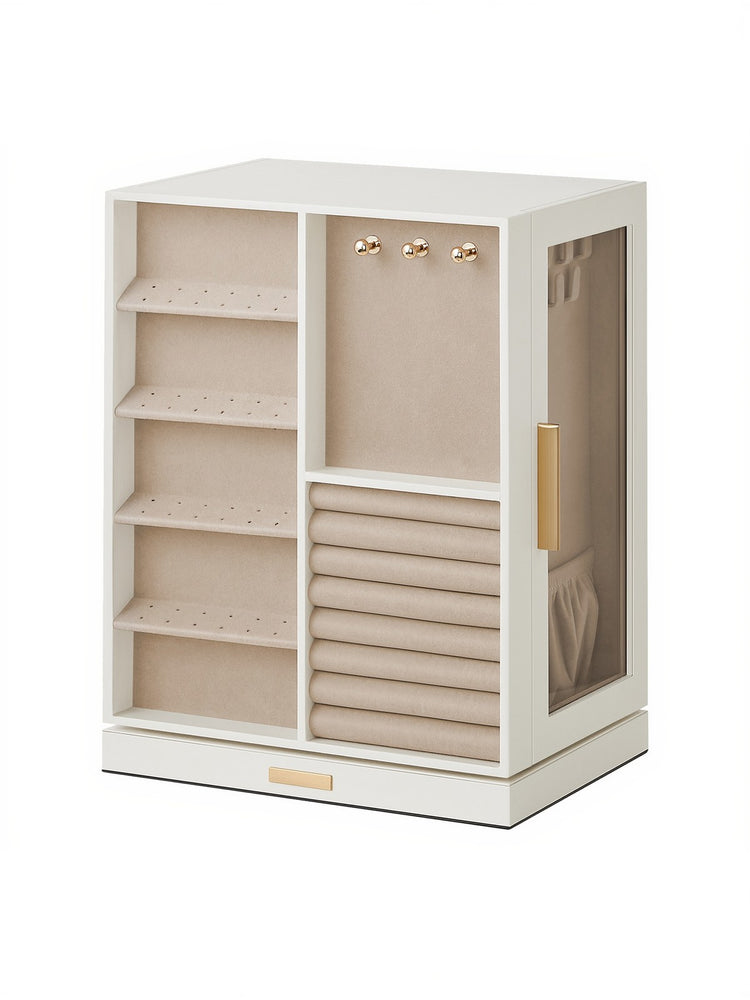 Rotating Jewellery Box with Drawers, Jewellery Storage Organiser for Vanity, Space-Saving Vertical Display Case, White