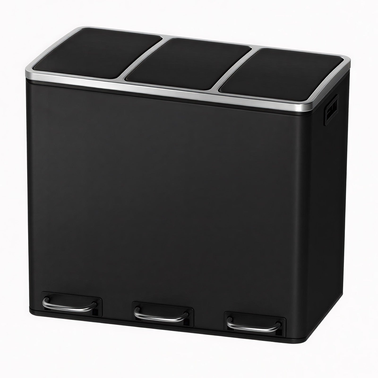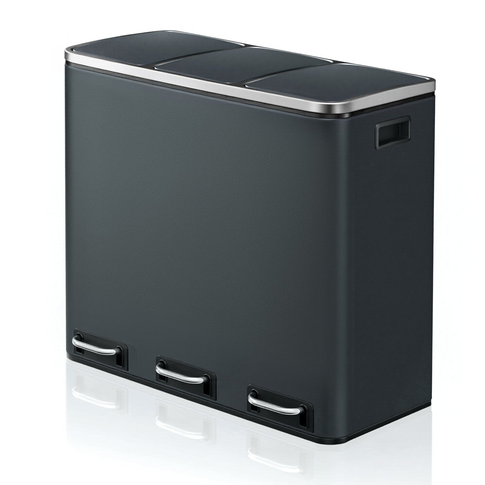 Triple Pedal Bin, 54 L Recycling Kitchen Waste Bin, Soft-Close Lids, Steel, for Home, Beige