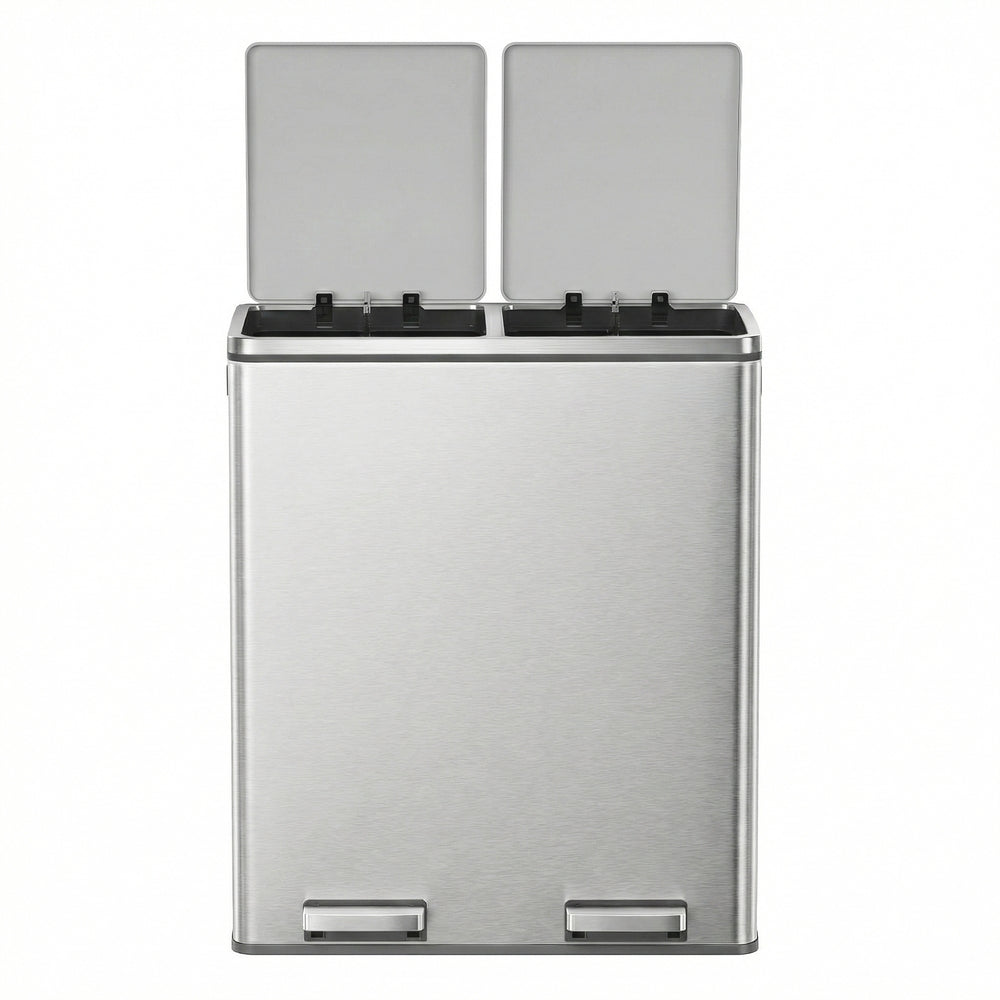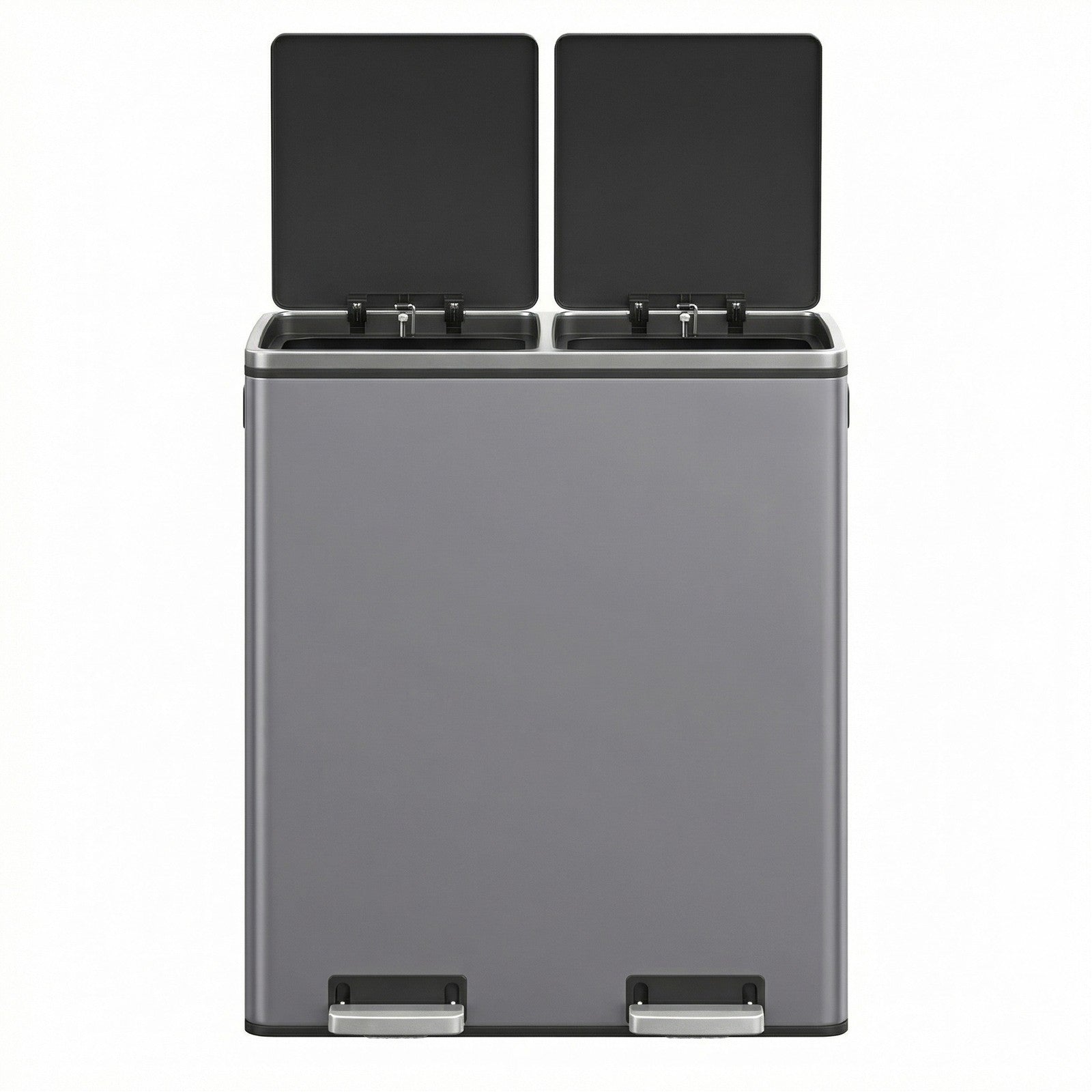 60L Pedal Rubbish Bin, Dual Sections, Soft-Close, Black