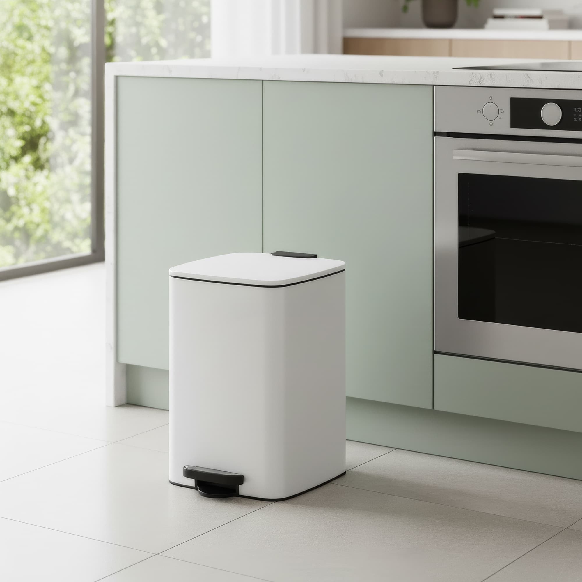 Pedal Waste Bin, 30 L Steel Bin with Inner Bucket, Soft Close, for Kitchen, Stays Open, Black