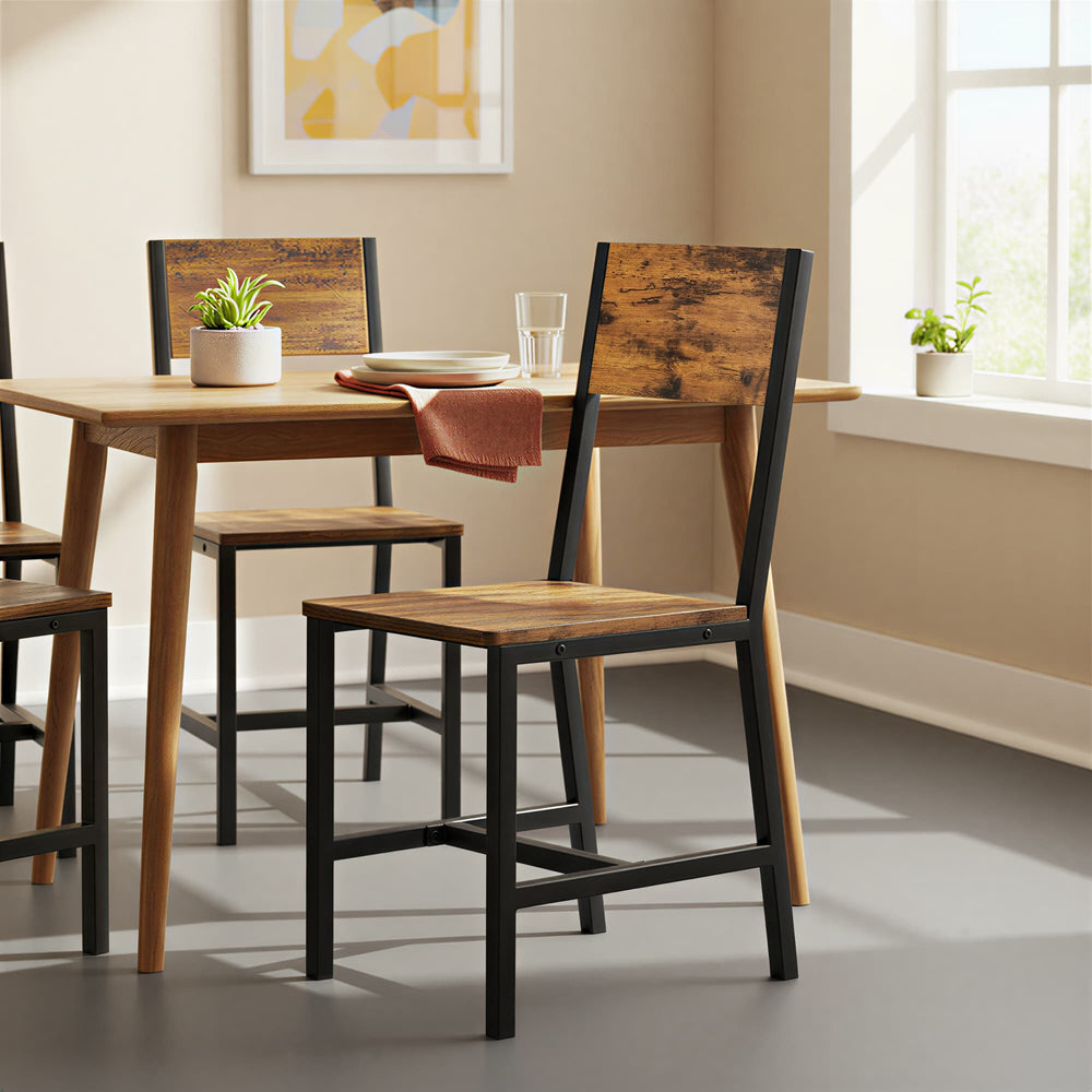 Set of 2 Kitchen Chairs, Rustic Dining Chairs with Back, for Kitchen, Bedroom, Living Room, Rustic Brown and Black