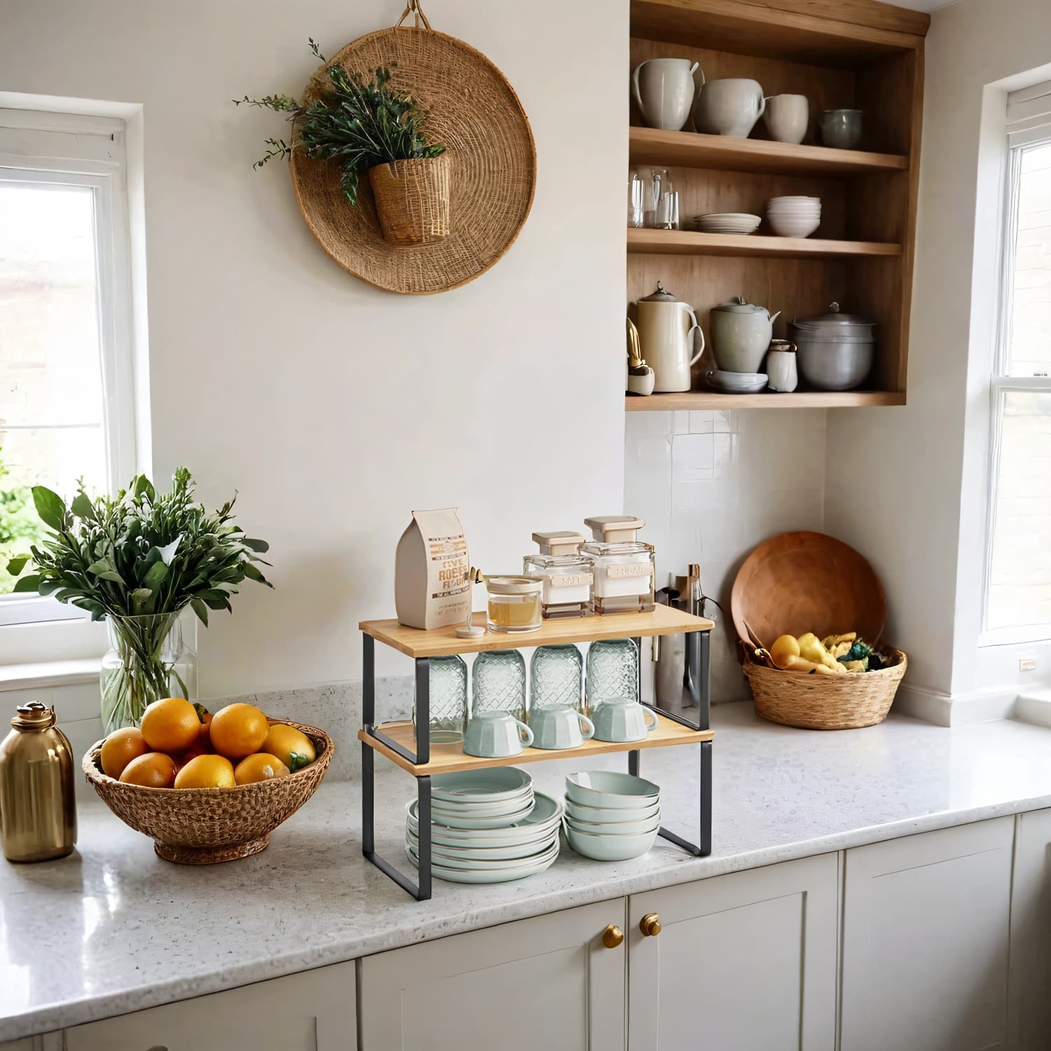 39.7 cm Cabinet Organizer Shelf, Set of 2 Kitchen Counter Shelves, Kitchen Storage