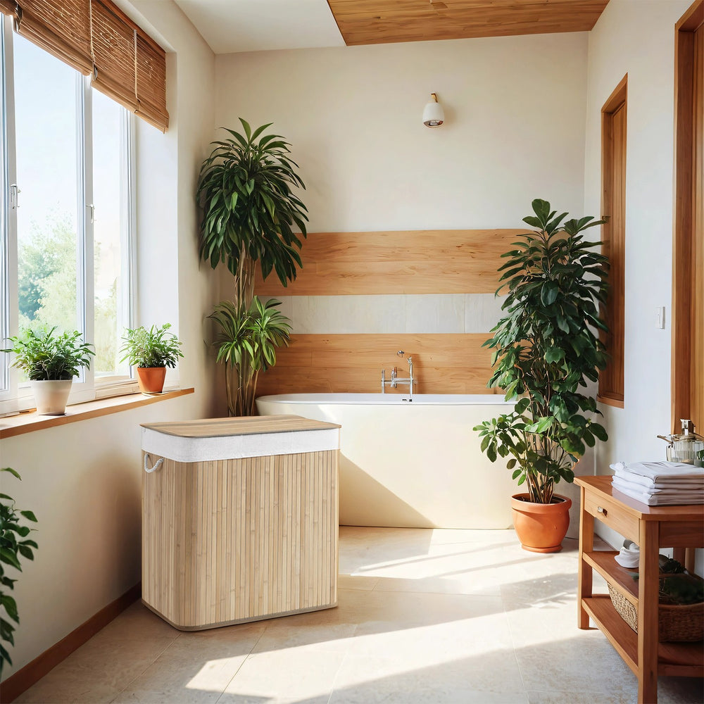 3-Section Laundry Basket, 150 L, Bamboo Laundry Hamper with Lid