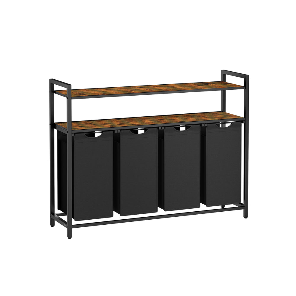 Laundry Basket with 4 Pull-Out Bags Rustic Brown and Black