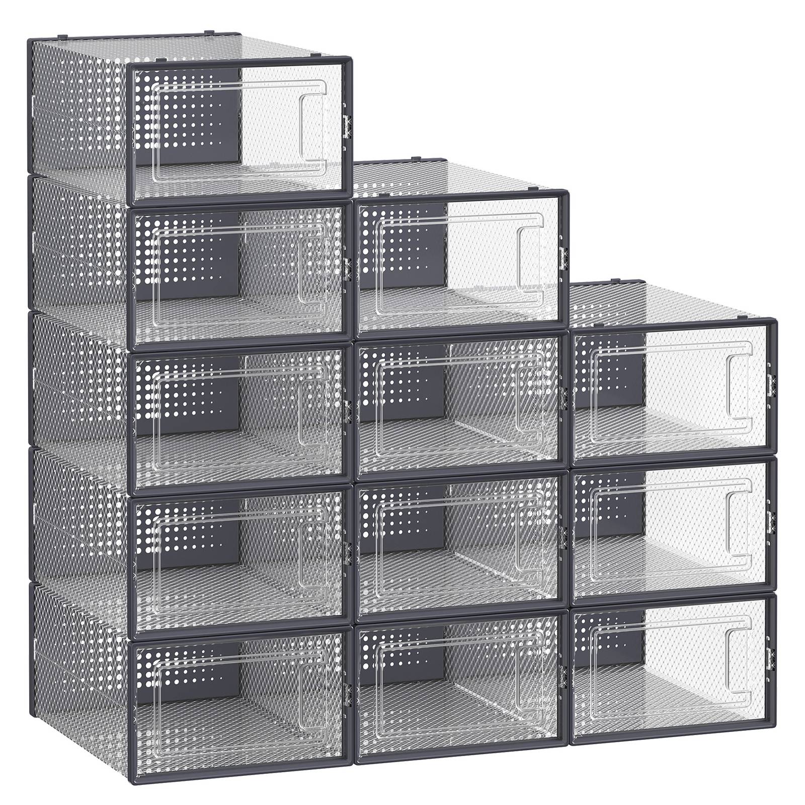 Stackable Shoe Boxes, Pack of 12 Shoe Storage Organizers, 33.3 x 23.2 x 14.3 cm