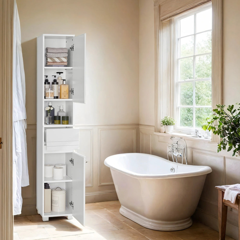 Tall Bathroom Storage Cabinet With Adjustable Shelves and Drawer, White