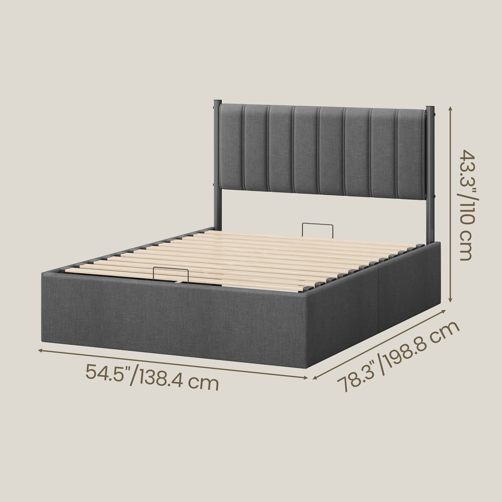 VASAGLE Double bed frame with lift up storage and easy assembly