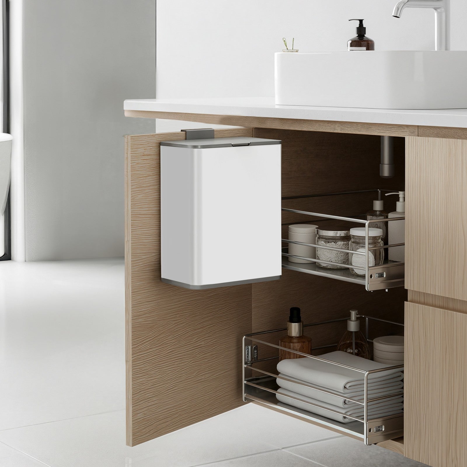 2.1-Gallon, 8 L Hanging Kitchen Trash Can with Lid, Cupboard Door Hanging or Wall-Mounted