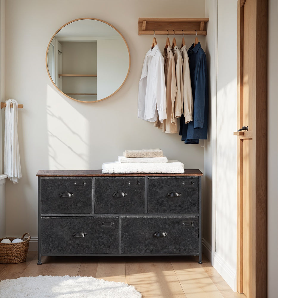 SONGMICS Brown & Black Storage Dresser with 5 Fabric Drawers