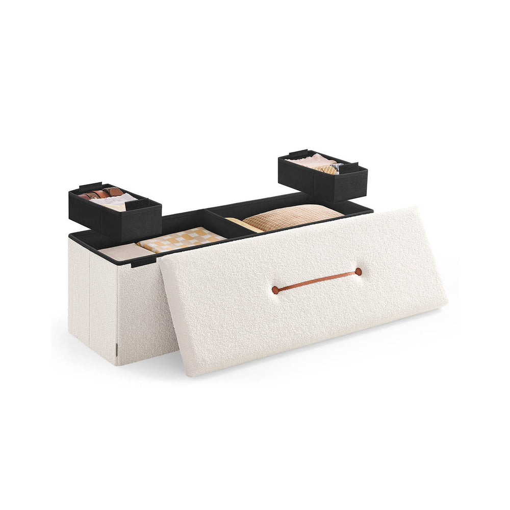 Folding Storage Ottoman 38 x 110 x 38 cm with Removable Lid Cream White