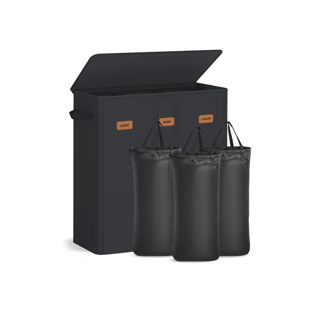 SONGMICS Laundry basket with three compartments lid washable liner and labels