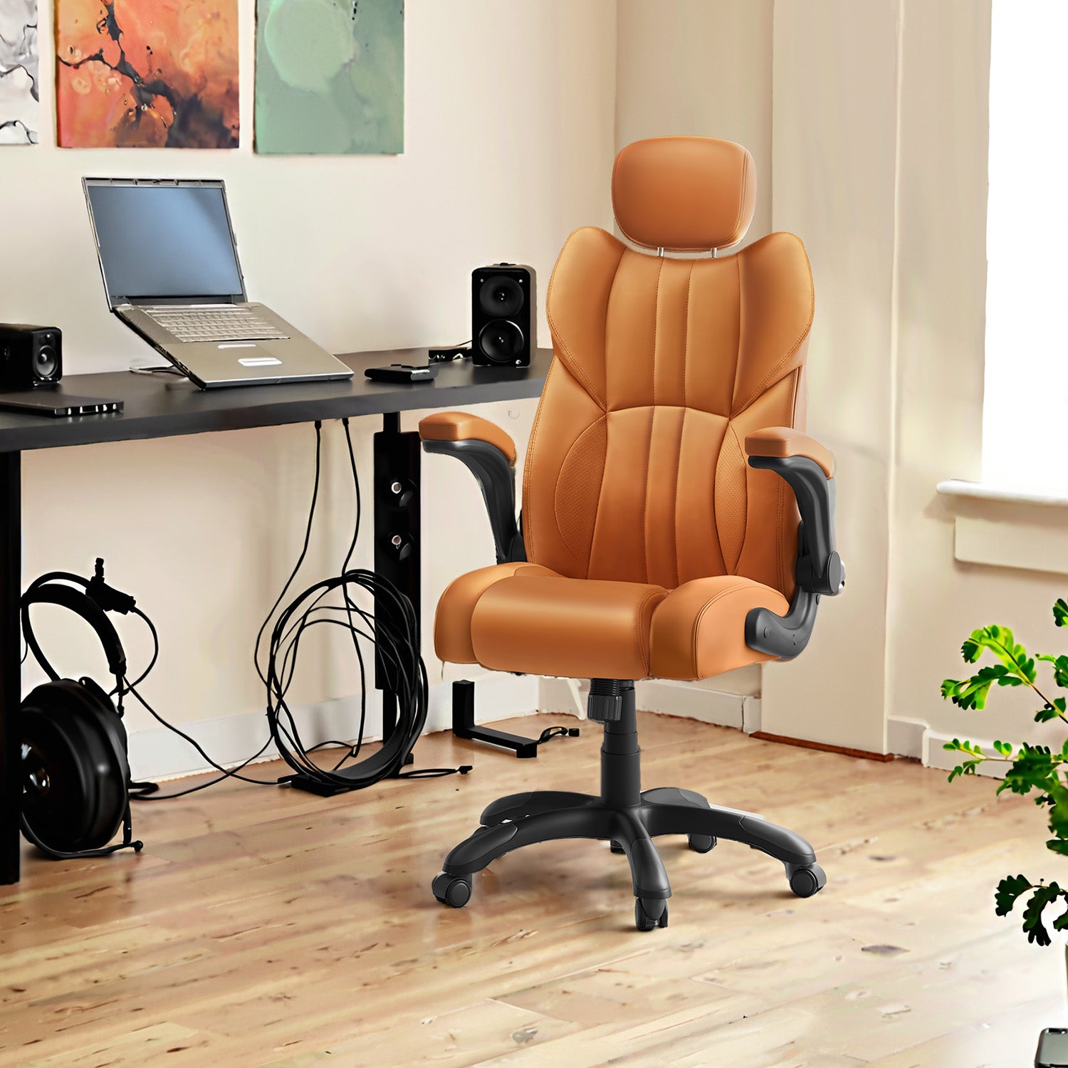 Height Adjustable Gaming Office Chair with Headrest, Tilt and Swivel Castors, Faux Leather