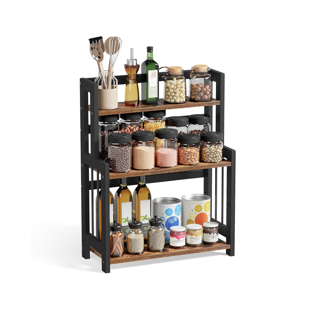 3-Tier Countertop Spice Rack with Bamboo Frame Ebony Black