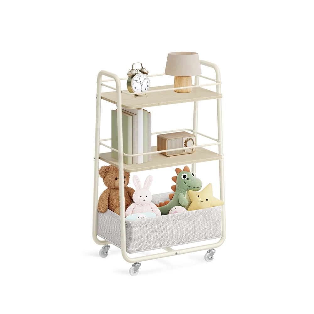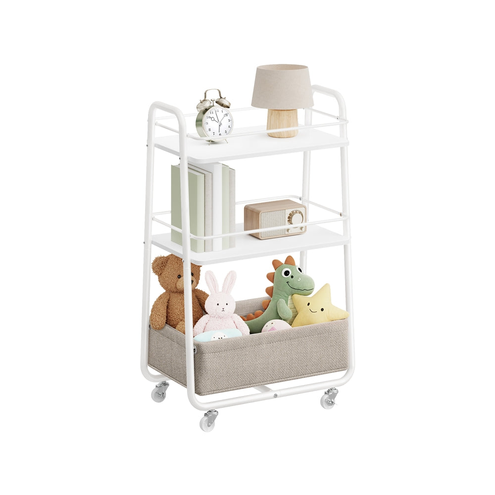 VASAGLE Rolling storage trolley with fabric basket and shelves