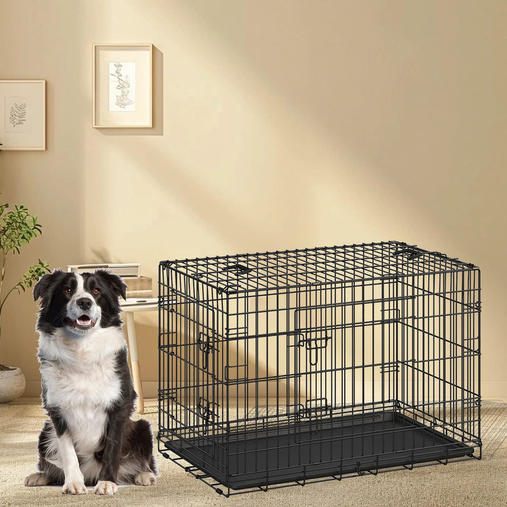 Metal Dog Crate, Foldable Dog Kennel with Removable Tray, XXL