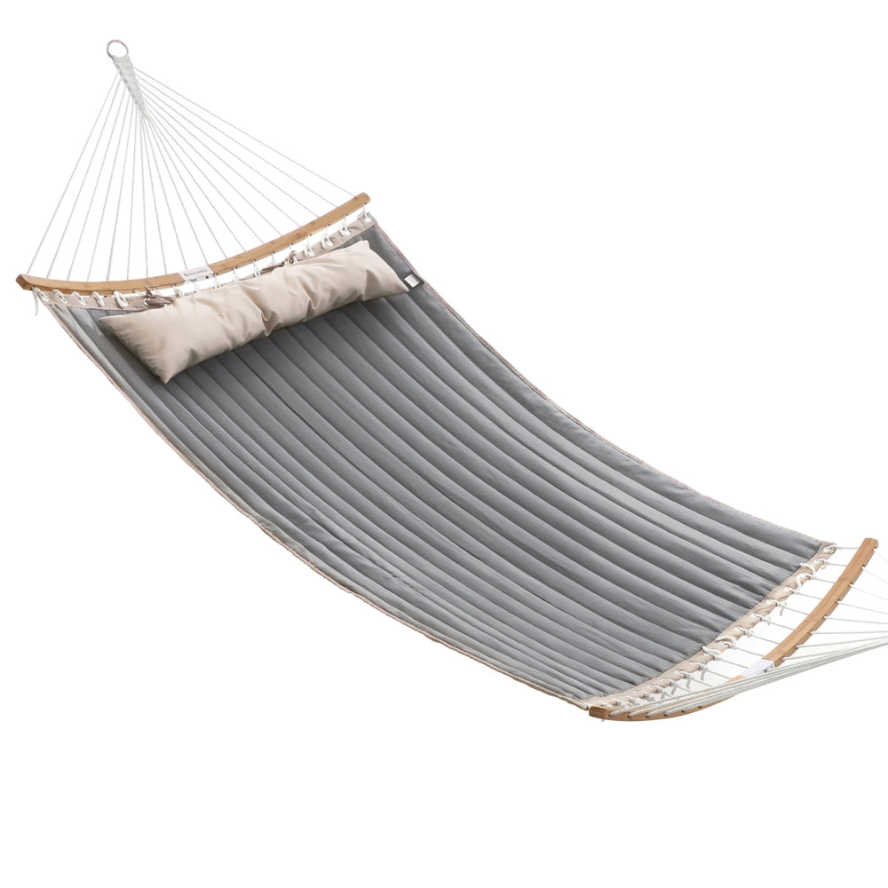 Gray Hammock Bed with Pillow with Spreader Bars