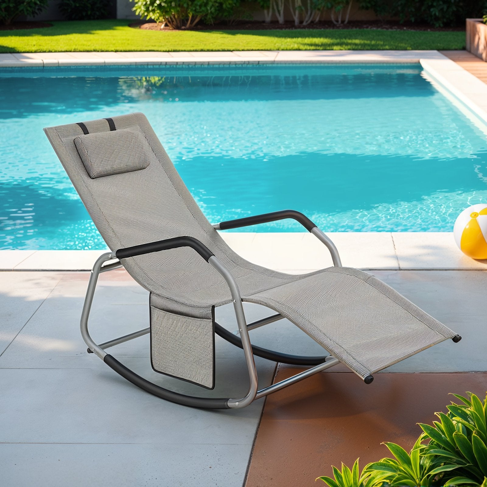 Outdoor Recliner Chair, Breathable Fabric Rocking Lounger with Steel Frame