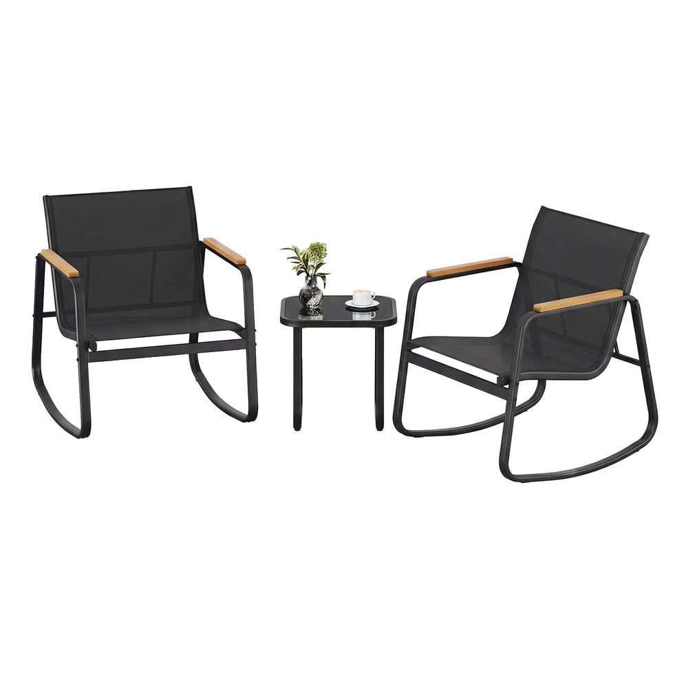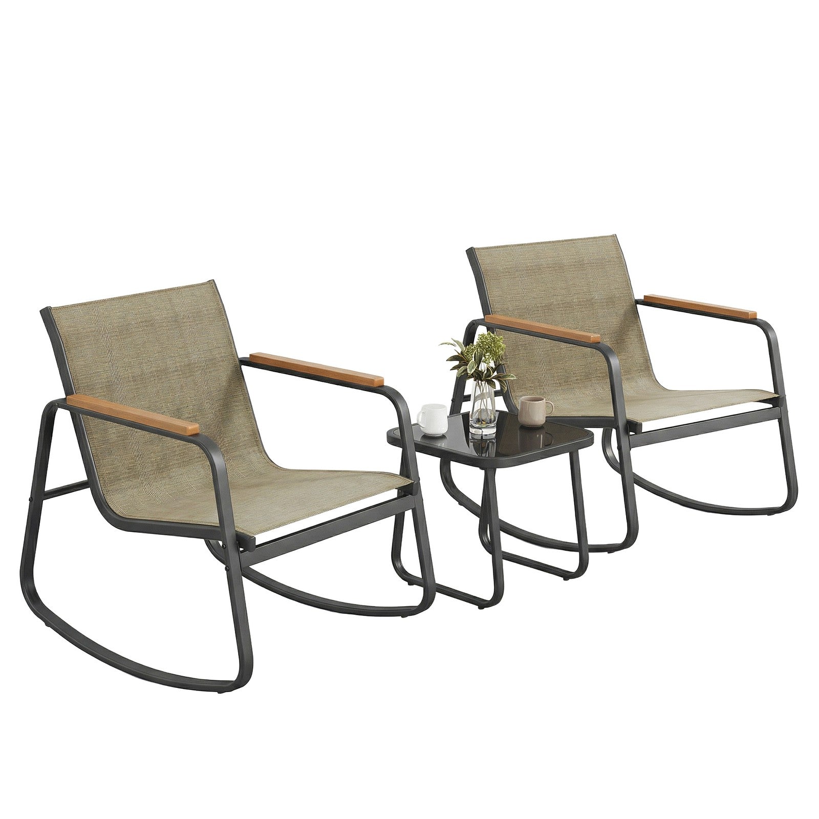 3-Piece Outdoor Conversation Set, Rocking Chairs with Table