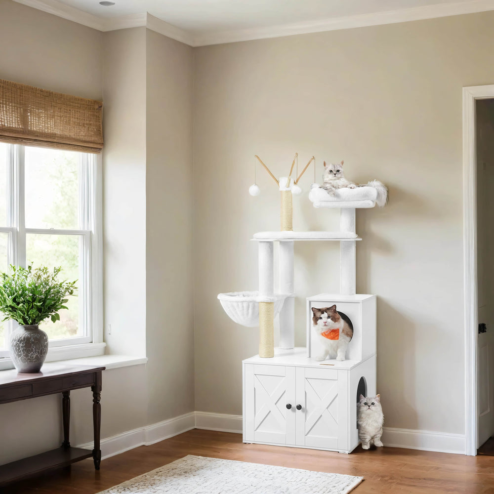 2-in-1 Cat Condo with Litter Box Cabinet, White