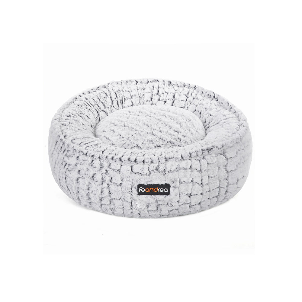 Grey Round Washable Dog Bed with Non-Slip Bottom