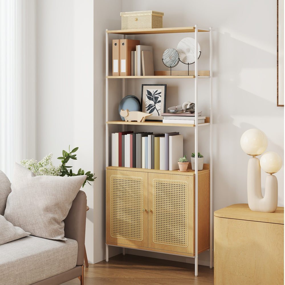 VASAGLE Tall Bookcase with Rattan-Like Doors | SONGMICS HOME