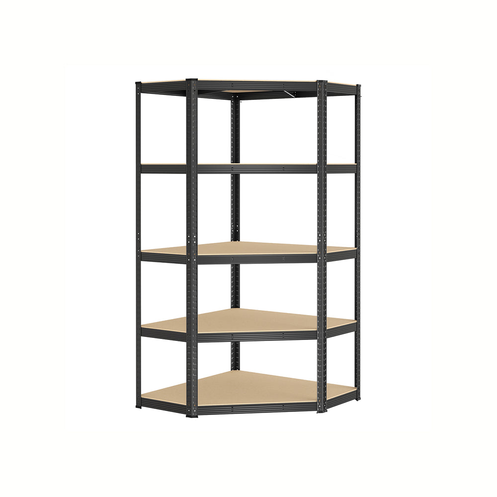 Corner Shelf 5-Tier Heavy Duty Loads 875 kg Ink Black and Natural Beige