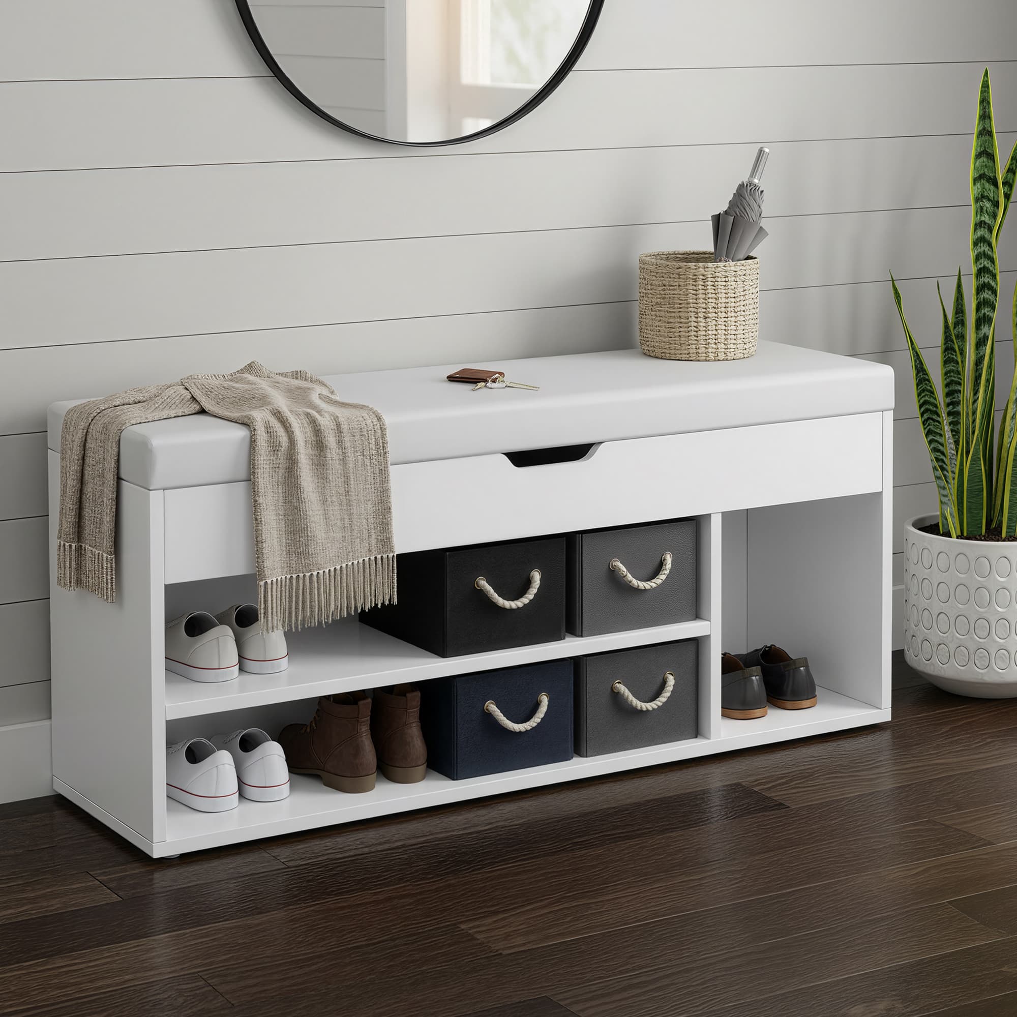 White Padded Shoe Bench